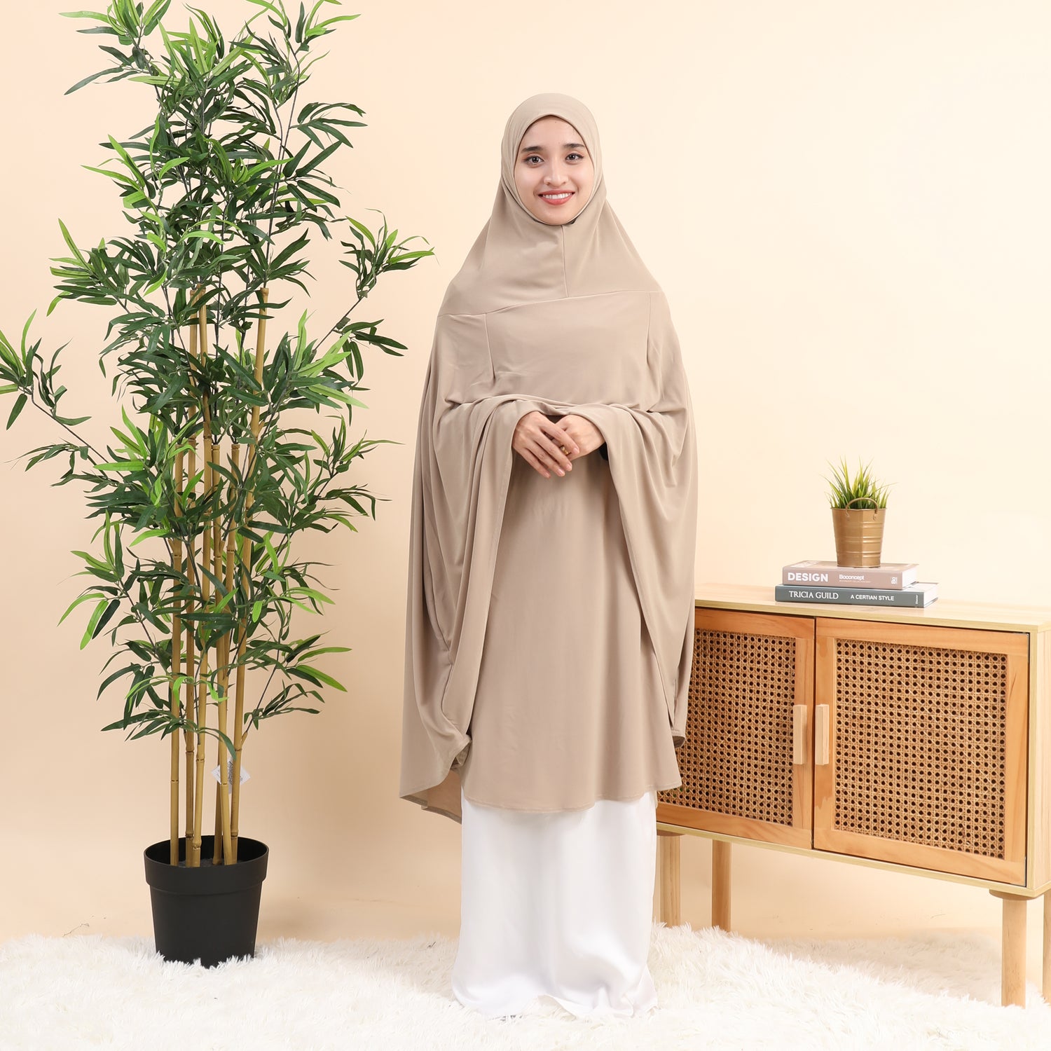 This garment began to develop in Southeast Asian countries, especially in Malaysia and Indonesia, as a special garment for prayer. It was designed with a simple but elegant design, so that women could perform their prayers with full devotion and without interruption.