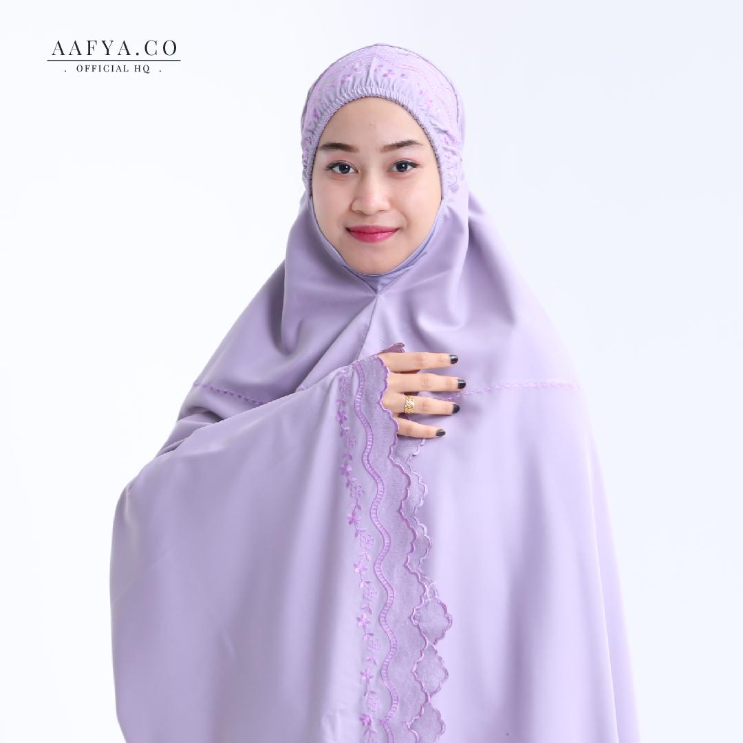 Introducing the TELEKUNG SULAM BUNGA BANAFSHA BY AAFYACO, a beautifully designed prayer attire that combines elegance and comfort for Muslim women.